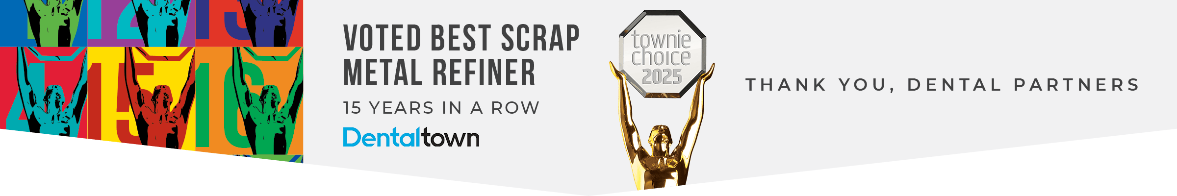 While the Townie Choice Awards began in 2003, the ‘Scrap Metal Refining’ category wasn’t introduced until 2011. Garfield has been honored every year since – an achievement we’re proud to uphold as the dental industry’s leading scrap refiner.
